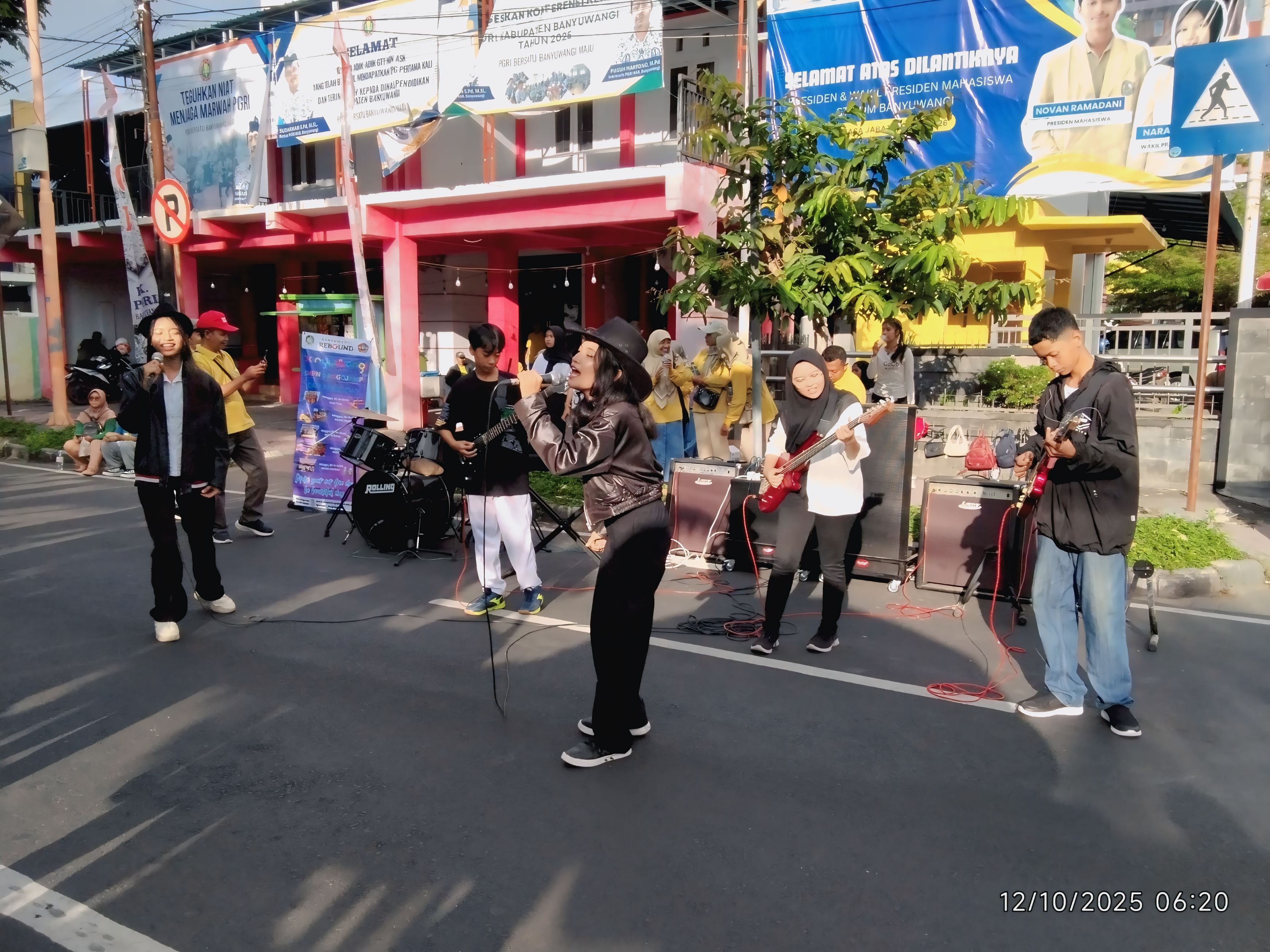 Giliran Ekstrakurikuler Band SMPN 3 Rogojampi tampil mengisi acara di Car Free Day Kabupaten Banyuwangi.